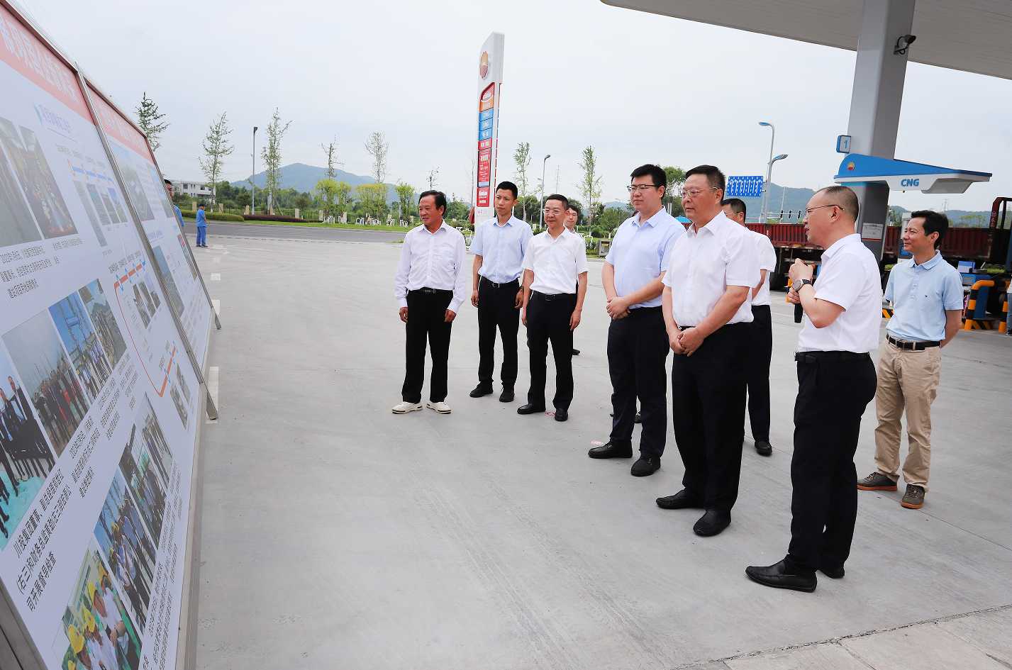 李文志一行深入宏源公司经开区油气合建站,详细了解油气合建站试运营情况并对安全生产提出要求。他指出,要持续开展工作人员安全教育培训,严格落实岗位安全责任、操作规程、日常巡检等安全制度,特别是要强化LNG安全加注操作流程的培训,确保油气合建站安全稳定运行。随后,李文志宣布宏源经开区加油加气站投运。