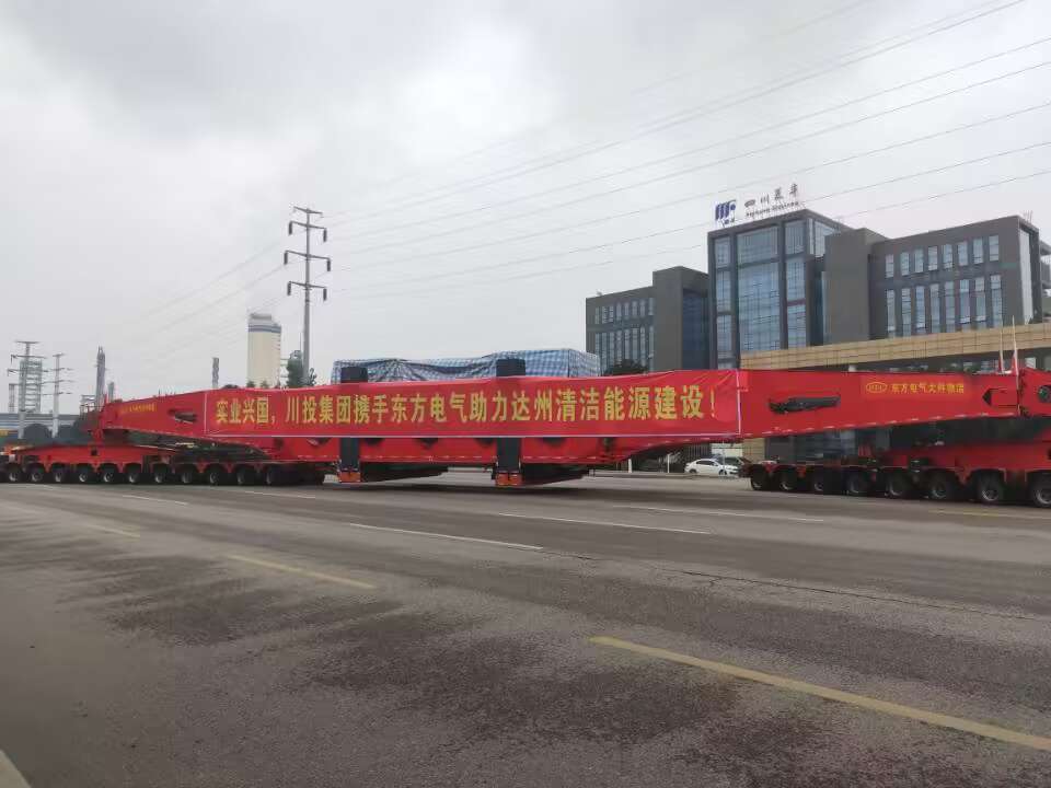 3号发电机定子长10.3米、宽4.8米、高4.7米,重达370吨。此设备将从德阳运往达州气电二期工程现场,运输距离509千米,预计耗时7天,采用液压平板进行运输,这是该工程首件发运的大件设备。